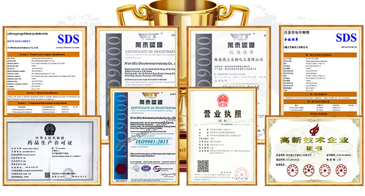 Xi'an Deli Biochemical Industry Co., Ltd. သည် အထူးပြုထားသော နည်းပညာမြင့် လုပ်ငန်းတစ်ခုဖြစ်သည်။ R&D၊ Cyclodextrins နှင့် ၎င်းတို့၏ ဆင်းသက်လာသော ပစ္စည်းများ ထုတ်လုပ်ခြင်းနှင့် ရောင်းချခြင်း။ ကျွန်ုပ်တို့သည် တည်ငြိမ်သောအရည်အသွေးနှင့် ယုံကြည်စိတ်ချရသောဝန်ဆောင်မှုဖြင့် ကမ္ဘာတစ်ဝှမ်းရှိ သုံးစွဲသူများအား ဆေးဝါးဖြည့်စွက်စာများကို ပံ့ပိုးပေးပါသည်။
