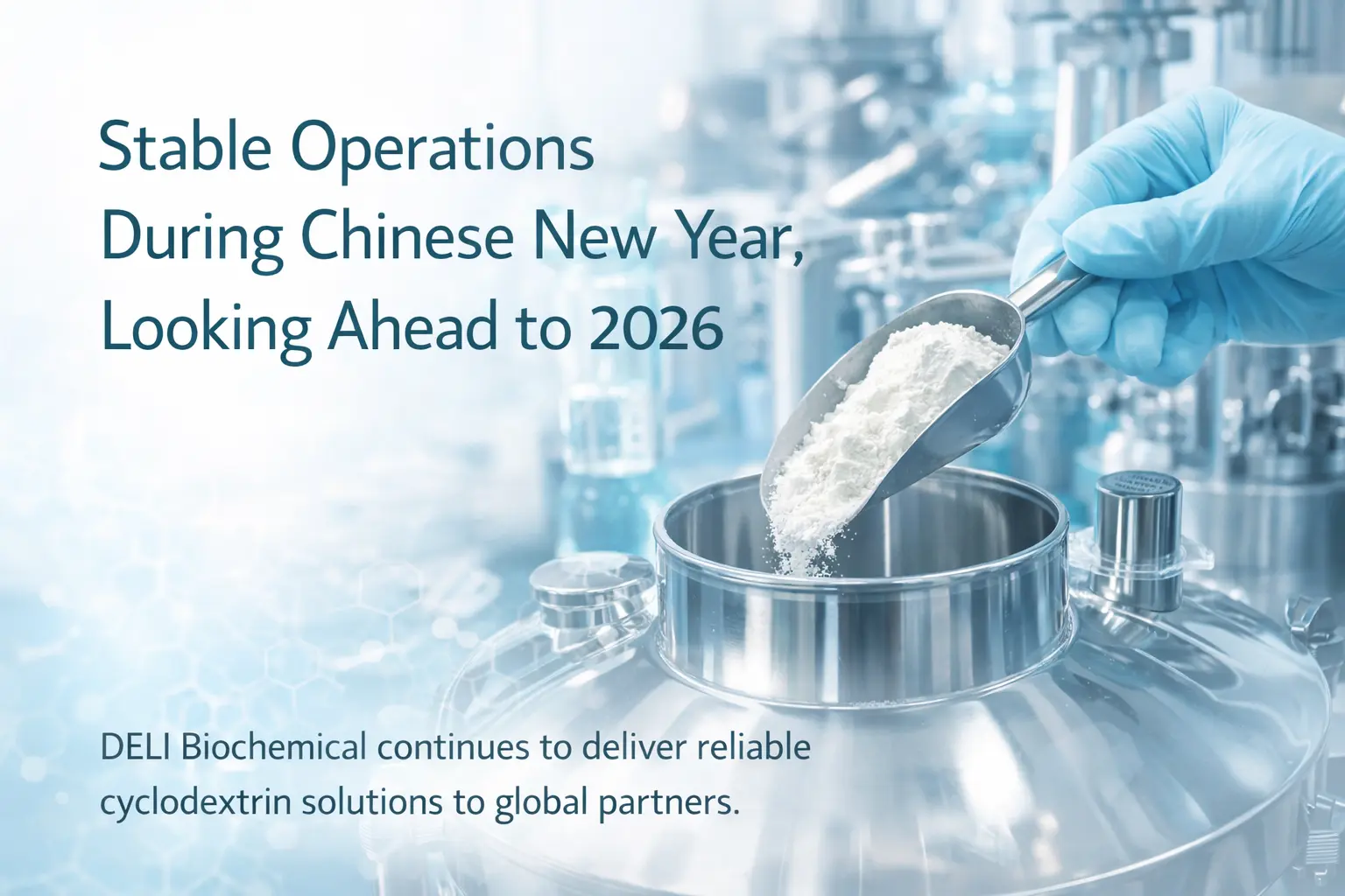 မကြာသေးမီက တရုတ်နှစ်သစ်ကူး အားလပ်ရက်အတွင်း DELI Biochemical သည် ကုမ္ပဏီသည် 2026 ခုနှစ်သို့ ရောက်ရှိလာသည်နှင့်အမျှ အရည်အသွေး၊ ဘေးကင်းမှုနှင့် ရေရှည်မိတ်ဖက်များဆိုင်ရာ ကတိကဝတ်များကို သေချာစွာ စီစဉ်ခြင်းနှင့် တာဝန်ယူမှုရှိသော ထုတ်လုပ်မှု စီမံခန့်ခွဲခြင်းများမှတစ်ဆင့် တည်ငြိမ်သော လည်ပတ်မှုနှင့် ယုံကြည်စိတ်ချရသော ထောက်ပံ့မှုကို ထိန်းသိမ်းထားသည်။